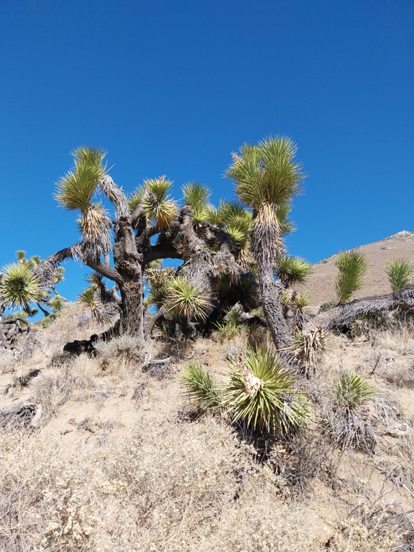 Nach einer angenehmen Woche am See, fahren wir am Montag 27. Oktober weiter. Noch einmal besuchen wir die Quellen am Kern River und geniessen ein warmes Bad. Unsere Fahrt führt uns zurück zum Lake Isabella und sogleich ostwärts durch das sich weitende Tal. Links und rechts des Highway 178 säumen nun Kakteen und Sukkulenten unseren Weg. Zunächst nur kleine, je näher wir uns aber dem Walker Pass auf rund 1’610 m ü.M. nähern, werden sie immer grösser. Mannshohe Exemplare finden sich auf dem Pass und zeigen uns ein neues Vegetationsklima an. Schon fahren wir hinunter ins Indian Wells Valley in der nordwestlichen Mojave Wüste. Wolkenloser strahlend blauer Himmel und trockene Temperaturen um die 32 Grad Celsius erwarten uns. Kakteen sehen wir im Tal keine mehr. Dafür aber schier endlose Flächen mit Sand und Geröll in denen trockene Creosote Büsche wachsen. Das Tal ist vulkanisch geprägt und überall finden sich entsprechende Vulkansteine. Die riesige Mojave Wüste umfasst 113’300 km², was in etwa das 2.75-fache der Schweiz entspricht. Sie erstreckt sich über die Staaten Kalifornien und Nevada mit Ausläufern bis Utha und Arizona. Regen fällt hier nur etwa 150 mm pro Jahr, wovon am meisten im Februar. Die Tagestemperaturen sollten um diese Jahreszeit zwischen angenehmen 18 und 25 Grad Celsius liegen und sind damit doch etwas zu hoch.
