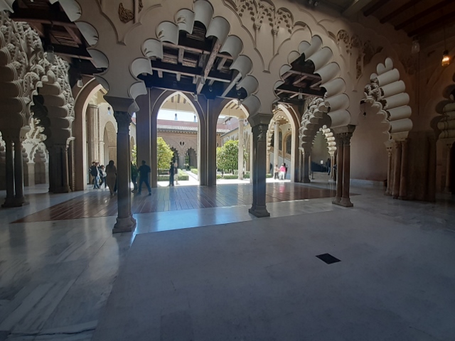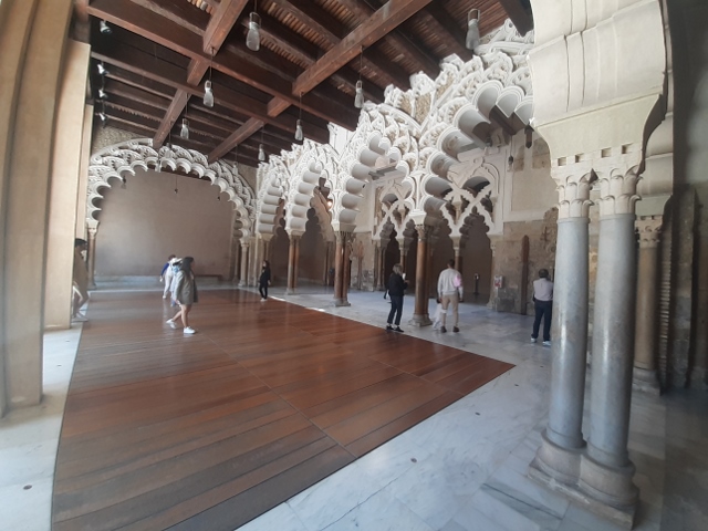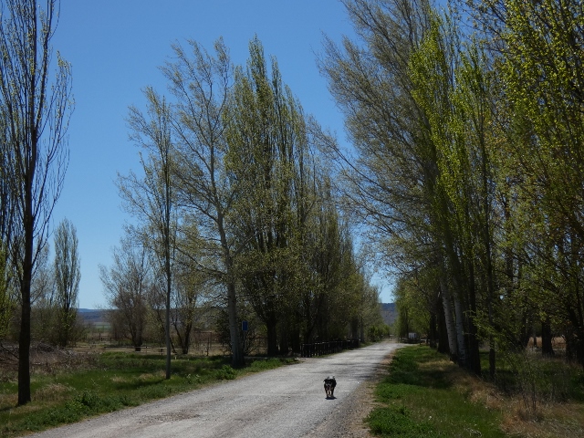 Nochmals geniessen wir am Donnerstag die wunderschöne Fahrt rund 160 Kilometer durch die Felder der Hochebenen von Aragon. Kurz vor Zaragoza geht die Fahrt zügig in tiefere Lagen zwischen 200 und 300 Metern. Am nördlichen Stadtrand von Zaragoza, gleich neben der Universität für Ingenieurwesen und Architektur befindet sich ein grosser Stellplatz für Wohnmobile. Hier finden wir einen ruhigen Platz für die nächsten Tage und Nächte. Durch die Türe haben wir einen guten Blick auf unsere Nachbarn und ihre Behausungen. Nein, nicht die anderen Wohnmobilisten, sondern die wilden Kaninchen. Das interessiert natürlich auch Kiara, obwohl in ihrem Alter, zu langsam und ohne Jagdtrieb eben. Zaragoza ist gleich wie Valencia sehr Fahrradfreundlich. Gut ausgebaute Fahrradwege führen in die Altstadt. Diese ist zwar nicht so imposant aber dennoch einen Besuch wert. Dabei besuchen wir die Kathedrale del Salvador und lassen uns per Audioguide die einzelnen Kapellen und Bauten erklären. Nach soviel Kunst und Geschichte lüften wir unsere Köpfe bei einem Stadtspaziergang aus. Wir bekommen Hunger und finden das originelle Tapas-Restaurant «La Republicana» wo wir gleich die Hausspezialität «12 Tapas» geniessen – lecker. Frisch gestärkt radeln wir wieder zurück zu unserem Wiwomo wo Kiara sehnsüchtig auf uns wartet. So verbringen wir die Tage hier in der Stadt und auf dem Stellplatz, mit Spaziergängen, Einkaufen und der Planung der weiteren Reise. Wir wollen noch die Sonne hier in Spanien geniessen und auf besseres Wetter in Frankreich und der Schweiz hoffen. Darum bleiben wir die nächsten zwei Wochen noch in der Region, bevor es über Andorra und die Pyrenäen nach Frankreich und die Heimat geht.