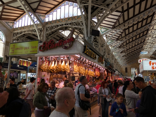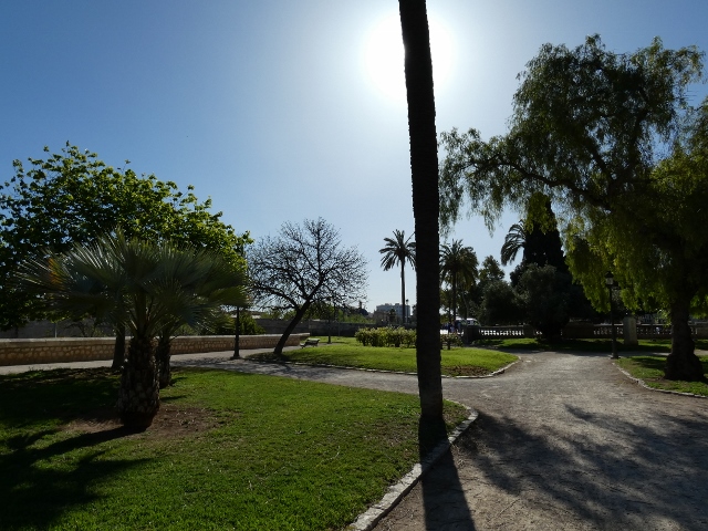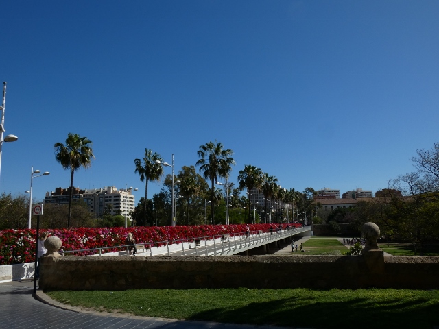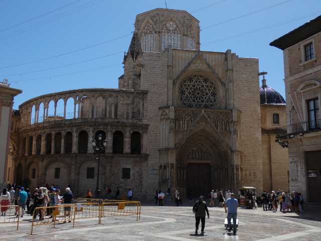 Die Stadt Valencia wollten wir letztes Jahr schon besuchen. Mit unserem Wiwomo in die Grossstadt wird schwierig und Hunde sind in den öffentlichen Verkehrsmitteln verboten. Dieses Jahr hat es geklappt. Die Vorräte sind aufgefüllt und wir können sicher eine Woche Autark stehen. Wir fahren also rund 230 Kilometer auf der Autobahn A7 von Murcia auf einen grossen Parkplatz in der Vorstadt Mislata, in der Nähe des Bioparks. Von hier aus ist die Altstadt von Valencia über die Parkanlage im ehemaligen Flussbett gut zu Fuss (eine Stunde) oder dem Fahrrad zu erreichen, auch mit Hund. Viermal besucht Roger so die Stadt. Einmal mit Sabine und Kiara und einmal Alleine mit dem Fahrrad und zweimal zu Fuss mit Kiara. Sabine mag nicht in der Sommerhitze lange laufen oder Rad fahren und geniest lieber das wiwomo mit der Klimaanlage. Der Parkplatz ist, ausser am Wochenende, wenig frequentiert. Nachts fahren ab und zu junge Leute hierher um sich zu treffen, zu kiffen oder sich lieb zu haben. In der Zeit vom 8. – 16. April konnte Sabine nur zwei Nächte nicht Schlafen, weil Jugendliche laut Musik hörten und andere gleich neben uns Gras rauchten. Valencia gefällt uns insgesamt sehr gut. Die Grün- und Freizeitanlagen im ehemaligen Flussbett laden zum verweilen ein. Die Wege für Fussgänger und Radfahrer sind sehr gut ausgebaut. Die Altstadt mit den vielen historischen Gebäuden, den verwinkelten Gassen und Plätzen sind Sehenswert. Wer sich für Architektur interessiert, findet hier auch viele unterschiedliche Bauwerke aus der Romanik über die Gotik bis zur Moderne. Andere finden hier viele Parks, gute Restaurants, Bars, Gelaterias und Kaffees. So bietet Valencia für jeden Besucher etwas. In der grossen Markthalle kann man sogar Appenzellerkäse kaufen – das weckt doch Heimatgefühle, oder?
