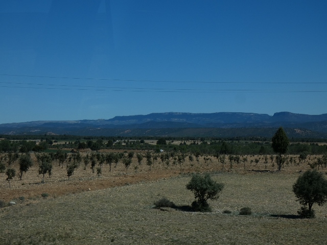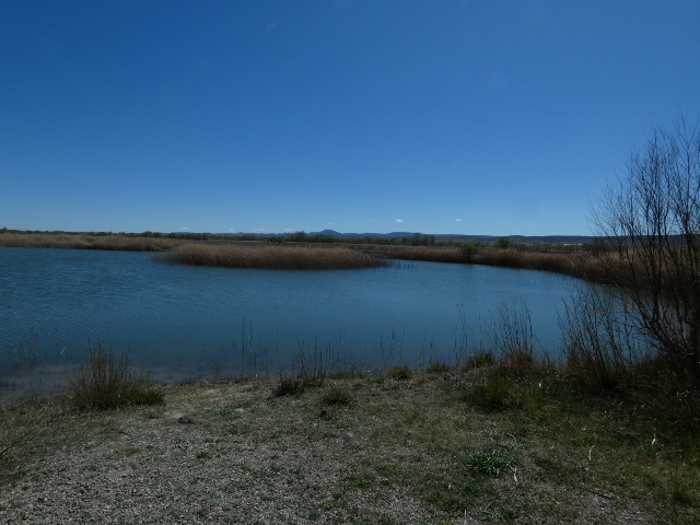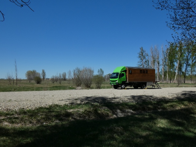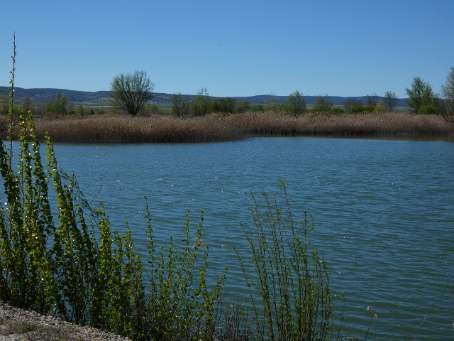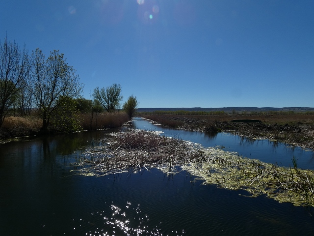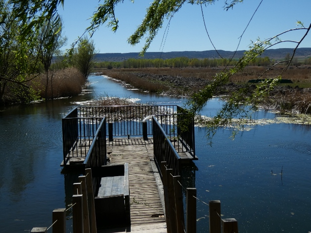 Es ist Dienstagmorgen der 16. April, als wir Valencia verlassen. Im Nachbarort Manises befindet sich ein Stellplatz direkt an der Strasse, wo wir Wasser auffüllen. Es ist eng und gefährlich, also Warnblicker einschalten und Warnweste anziehen. Über die Autobahn A23 fahren wir landeinwärts in Richtung Saragossa oder Zaragoza wie die Leute in Aragonien schreiben. Es geht stetig aufwärts. So erreichen wir nach etwa einer Stunde ein riesiges Hochplatteau auf 1000 Meter über Meer, dem wir folgen. Kurzzeitig erklimmen wir, über einen kleinen Pass, sogar die 1’230 Meter Marke. Nach 175 Kilometern erreichen wir den kleinen unscheinbaren Ort «Villarquemado». Dort gibt es eine touristisch interessante Lagune, oder für uns besser verständlich ein Hochmoorgebiet, an dem ein idyllischer Stellplatz liegt. Hier, in dieser Abgeschiedenheit auf 1’000 MüM. übernachten wir für zwei Nächte, weil es uns so gut gefällt. Aragonien ist die am dünsten besiedelte Region Spaniens. Dennoch sehen wir hier viele riesiege Felder mit Getreide, Obstkulturen, Weinbauflächen, Schweinefarmen und Freilauf-Kuhställe. Kaum zu glauben, dass die Landwirtschaft hier nur 4% des BIP erwirtschaftet. Hier sehen wir auch nur wenig Abfall, es scheint die Leute auf dem Land schätzen dieses Gut mehr als anderswo. Die Kaltfront aus dem Norden, welche der Schweiz gerade Schnee beschert, spüren wir hier auf 1’000 MüM. natürlich auch. Ein kalter Wind fegt uns um die Ohren.
