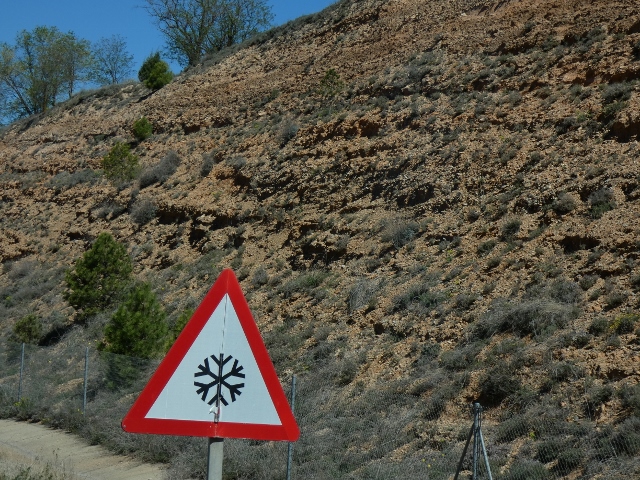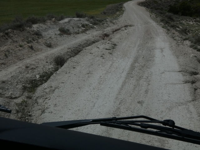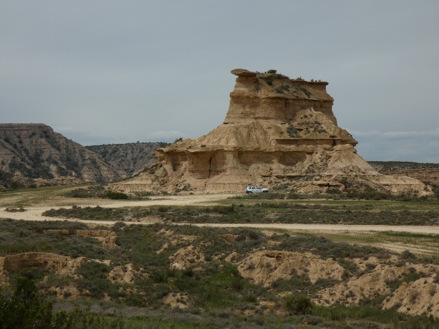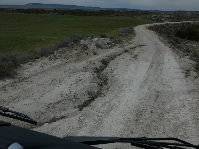 Am Montag 22. April fahren wir für 3 Tage auf den Camping la Estepa in Valfarta, 85 Kilometer von Zaragoza entfernt. Hier kann Sabine unsere Waschmaschine in Betrieb nehmen und unsere Wäsche waschen. Eine warme Dusche ist auch sehr angenehm hier auf dem Campingplatz im kleinen Dörfchen. Immerhin gibt es neben der Kirche auch eine kleine Bar. Wir befinden uns im Gebiet «Los Monegros» einer kargen, trockenen steppenartigen Landschaft, wo nur wenig Regen zu erwarten ist. Am Donnerstag geht die Fahrt aber gleich weiter auf staubigen Pisten der Gebirgslandschaft testen wir unser Fahrzeug mit Untersetzung und Allrad. Da freut sich Roger am Steuer. Das bordeigene Navi erkennt keinen Weg mehr, um so mehr ist der Navigator mit dem Lesen der Karte gefragt. Die nächsten Tage verbringen wir so im kleinen Orten Villanueva de Sigena.